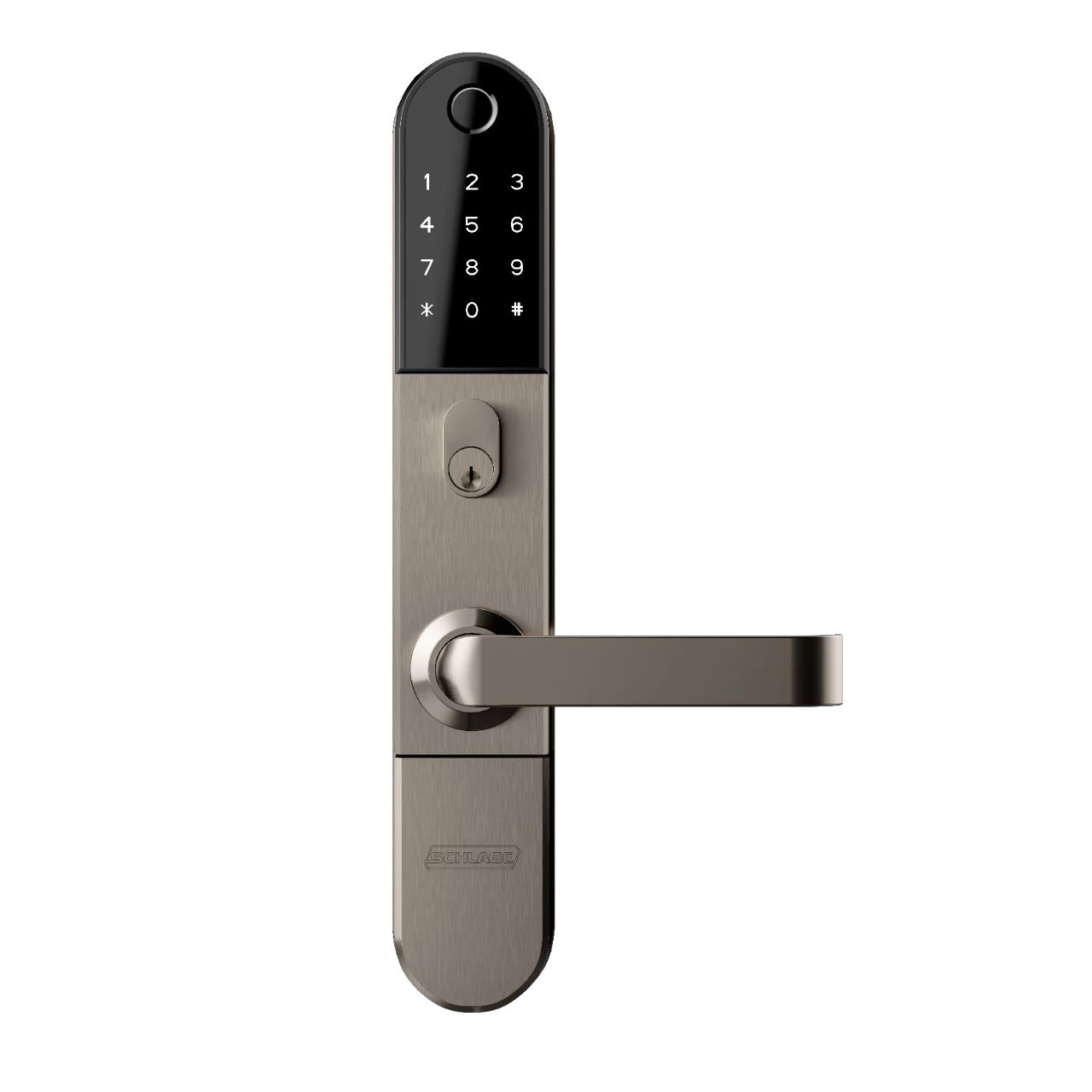 - Simple access through the Schlage Breeze app, touch keypad, fingerprint scanner, key tags or mechanical key override