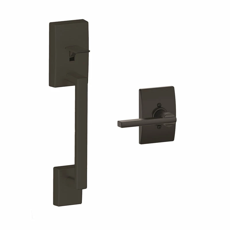 - All Schlage handle sets feature adjustable through-bolts that slide up and down 38mm, eliminating the need to patch or re-drill your door