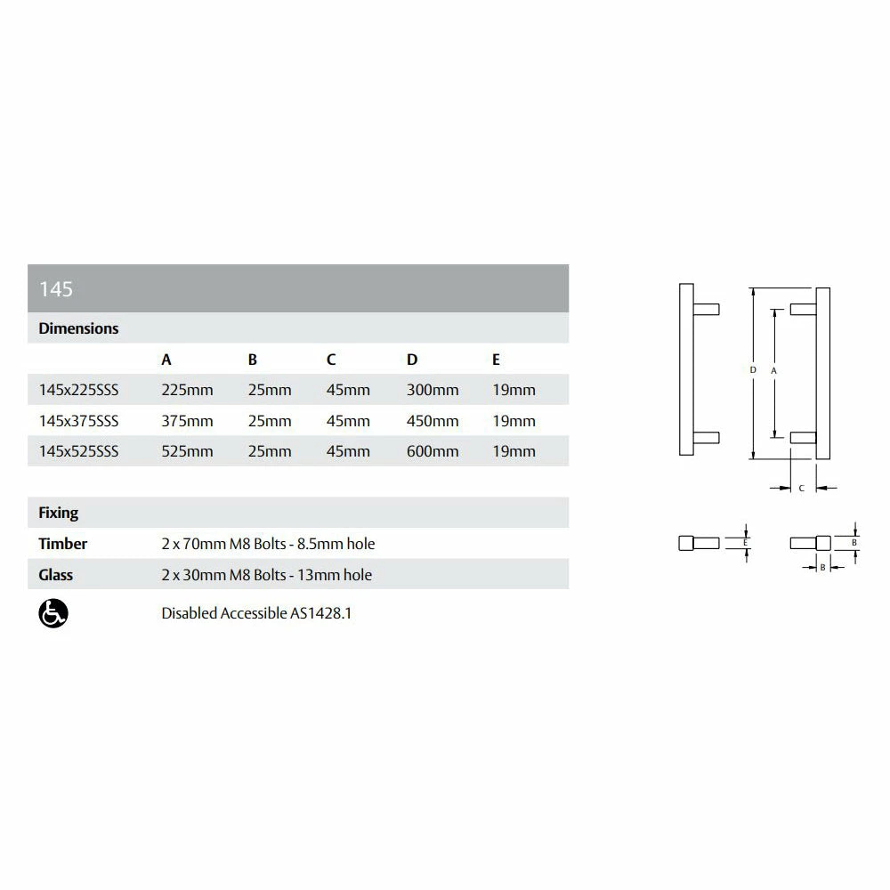 Constructed of 304 grade stainless steel, Lockwood Entrance Handles are suitable for use in external environments.