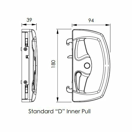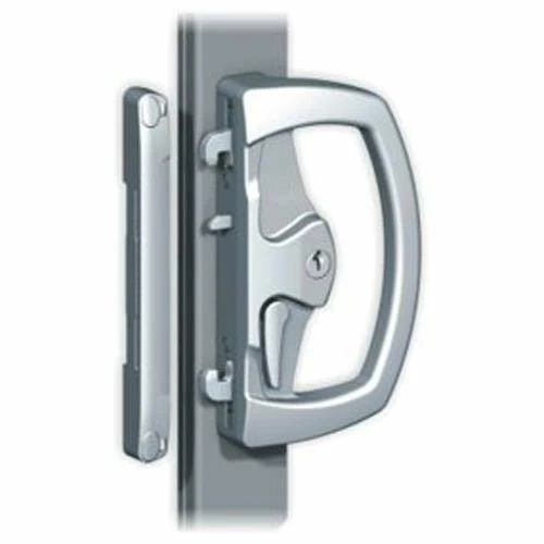 ReliableΒ all-metal lock forΒ aluminium slidingΒ doors. Once the door is closed, the twin beaks are operated by key or lever to engageΒ the catch plate.