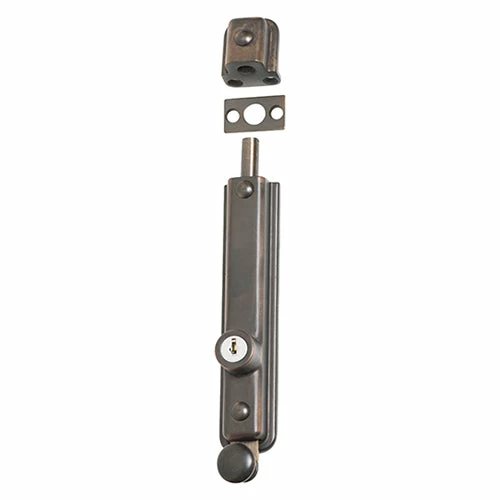 Key operated zinc alloy surface mounted bolt. Available in 9 finishes.