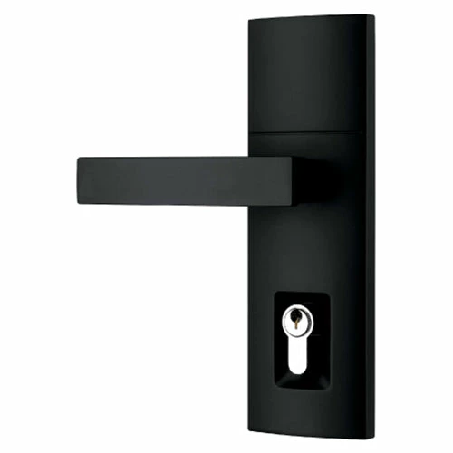 Inside and outside escutcheons and levers. No keyed cylinder. Suitable for non-locking leaf of double doors.