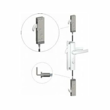 This cable-driven kit is used with Ultimate locksets to provide the extra security of three-point locking for hinged security doors.
