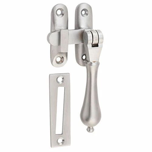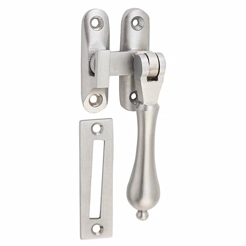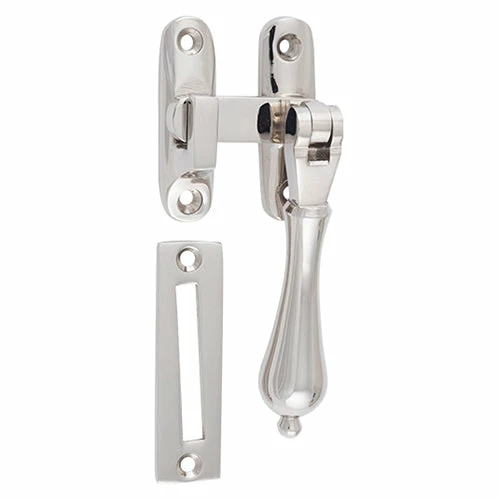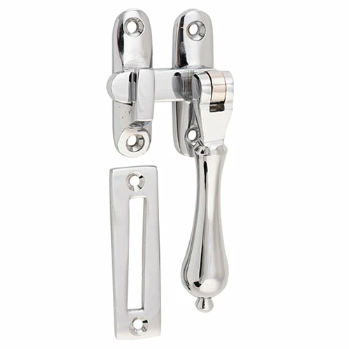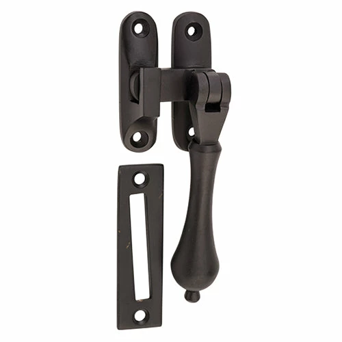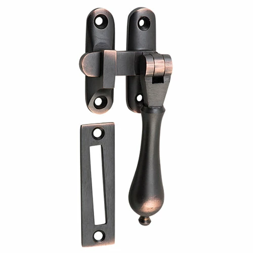 Solid brass teardrop casement fastener with extended tongue for long throw applications. Available in 10 finishes.