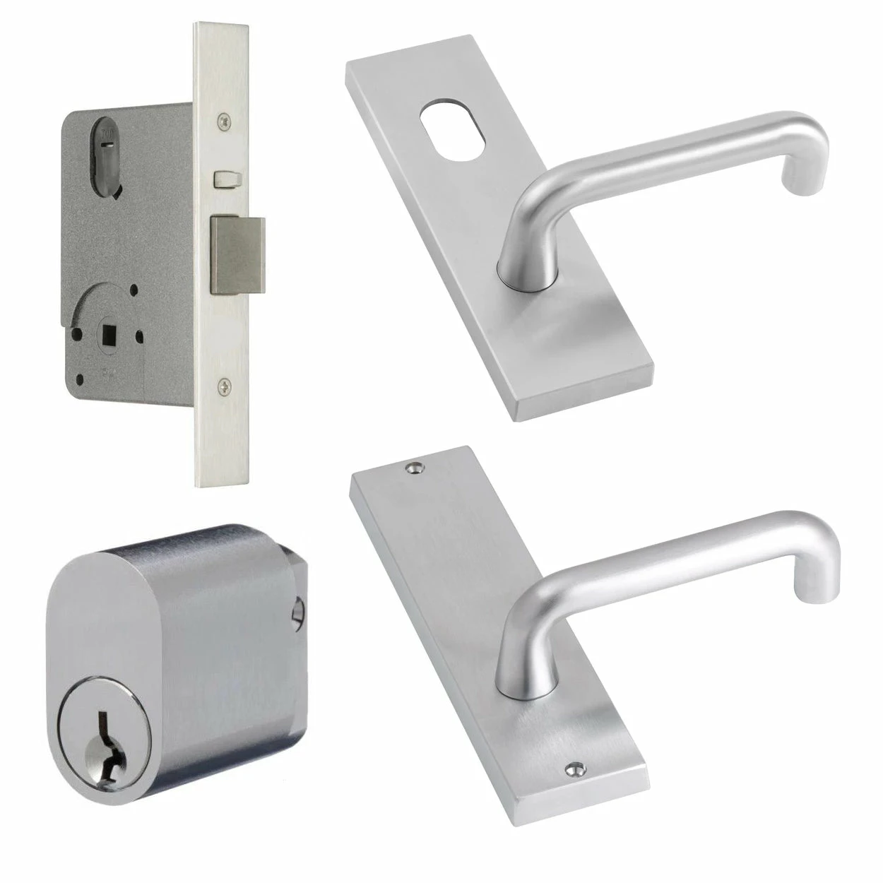 - Standard lock suitable for doors 32mm to 50mm thick. Extended cylinders, spindles and strike plates available to accommodate thicker doors and wider jambs