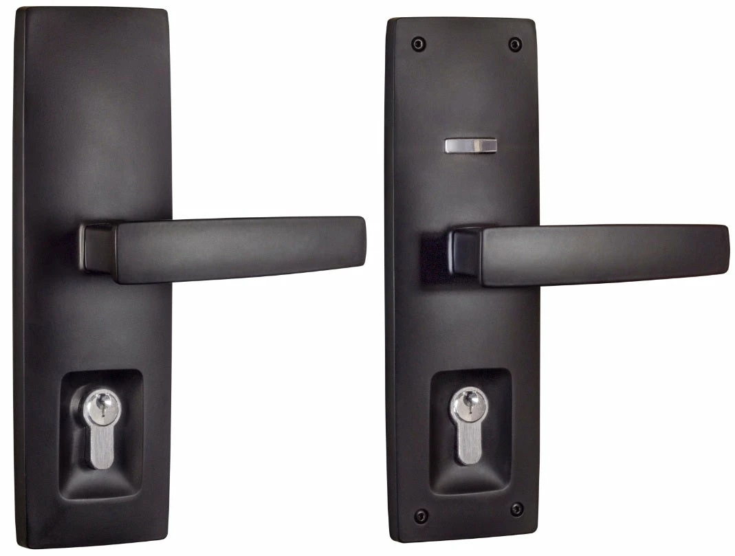 Urban styling with a plate featuring smoother, cleaner lines on both exterior and interior sides of the door.