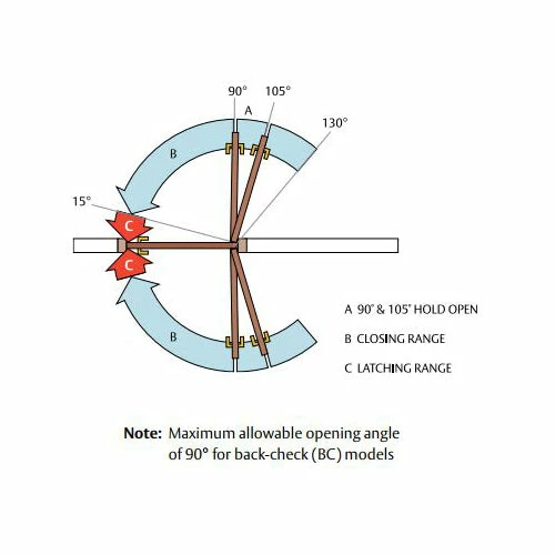 * Maximum allowable opening angle of 90Β° for back-check (BC) models